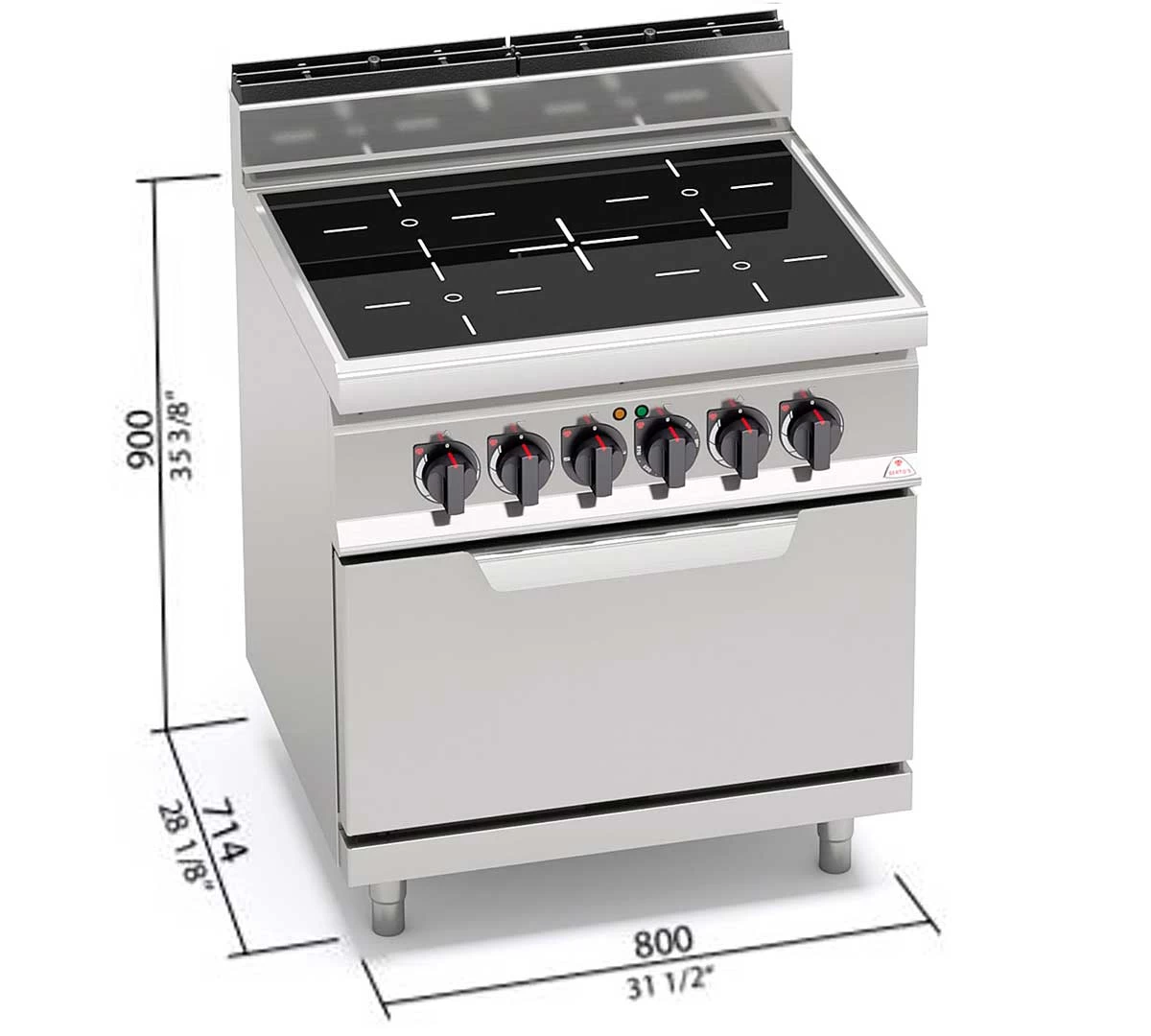 La Cocina Serie 700 con Horno Vitrocerámica de Bertos está fabricada en acero inoxidable con placa vitrocerámica. Calienta por irradiación el plano de cocción y alcanza altas temperaturas.