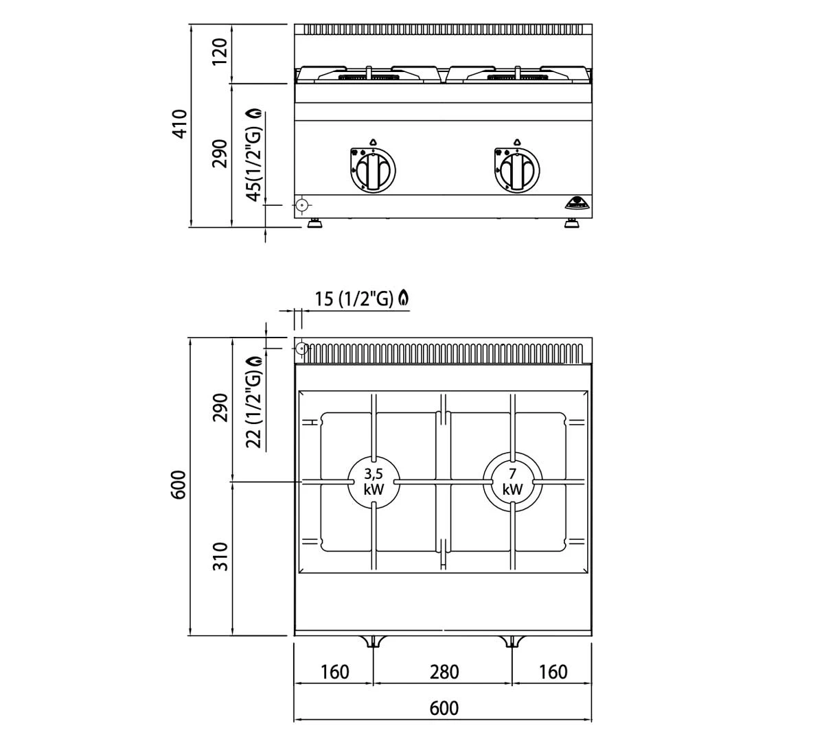 | Bertos Cocina Plus 600 High Power G6F2BH6 G6F2BH6 – 2 Fogones | ||