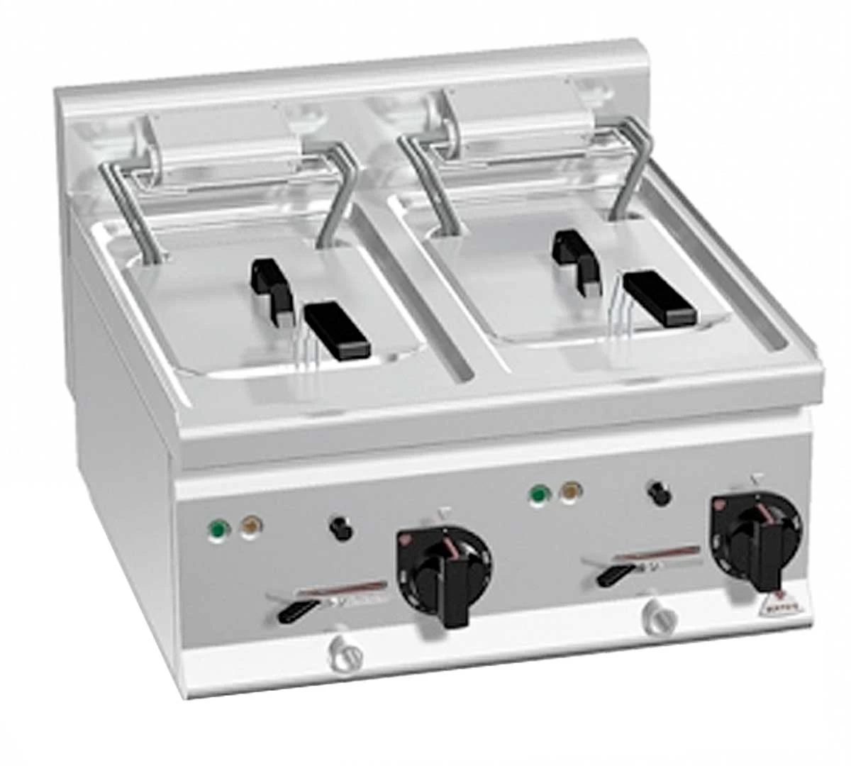 Freidora Plus 600 Turbo E6F10 6B Eléctrica de Bertos fabricada en acero inoxidable con resistencias, control automático de temperatura mediante termostato regulable y patas regulables.