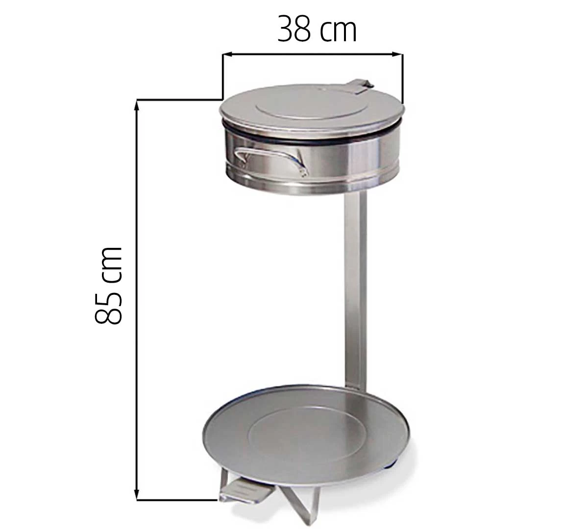 El Soporte para Bolsa con pedal de Distform está fabricado en acero inoxidable y tiene 2 ruedas. Incluye una tira de goma en la parte superior para sujetar la bolsa con seguridad.