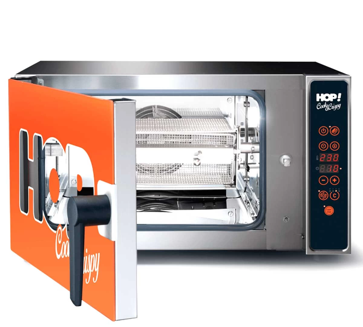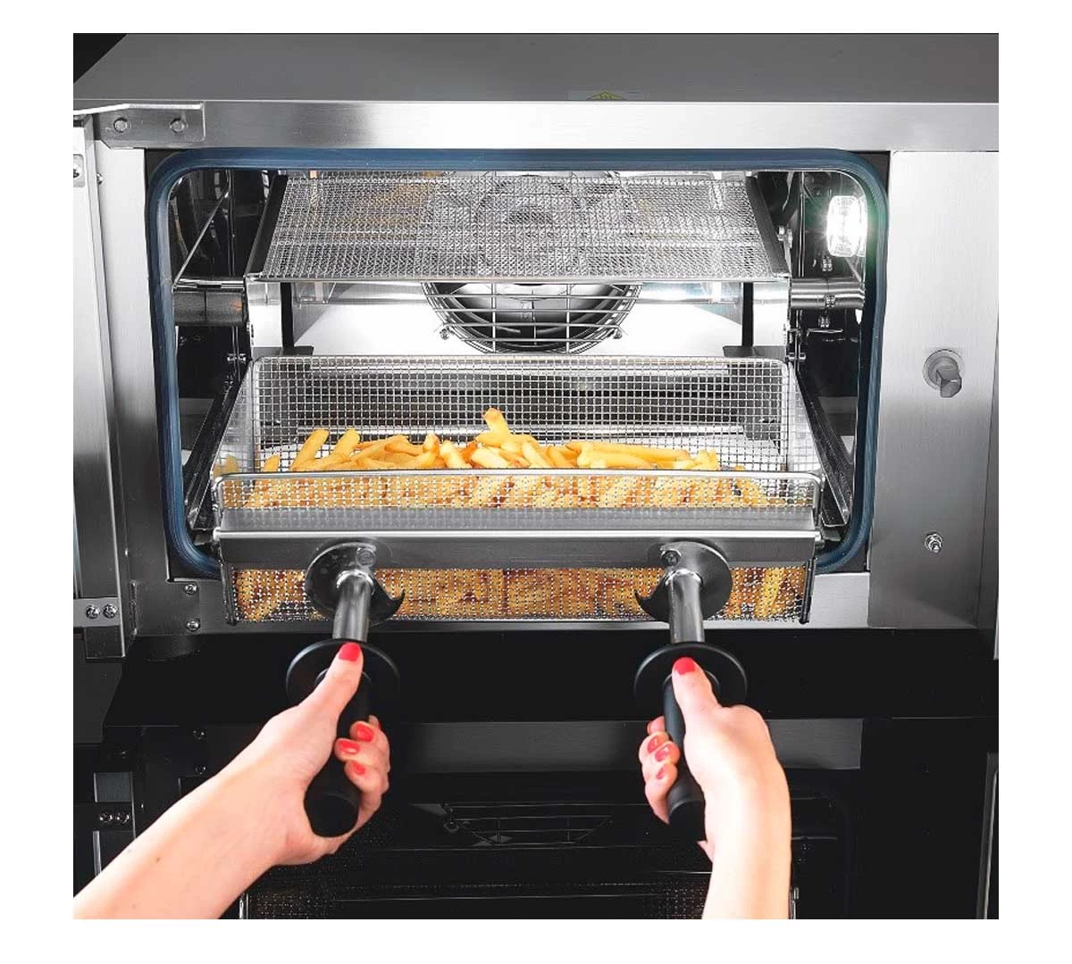 Equipada con conexión monofásica de 3.500 W, conexión USB para cargar y descargar recetas, control digital con 99 programas y rejilla especial para freír productos delicados.
