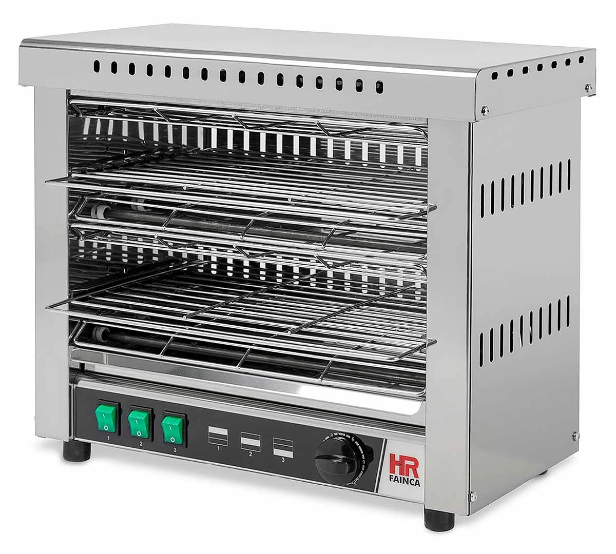 El Tostador con Temporizador T06CONB de Fainca tiene dos nivel y está fabricado en acero inoxidable. Con una potencia de 3,6 kW. Incluye temporizador de hasta 15 minutos.