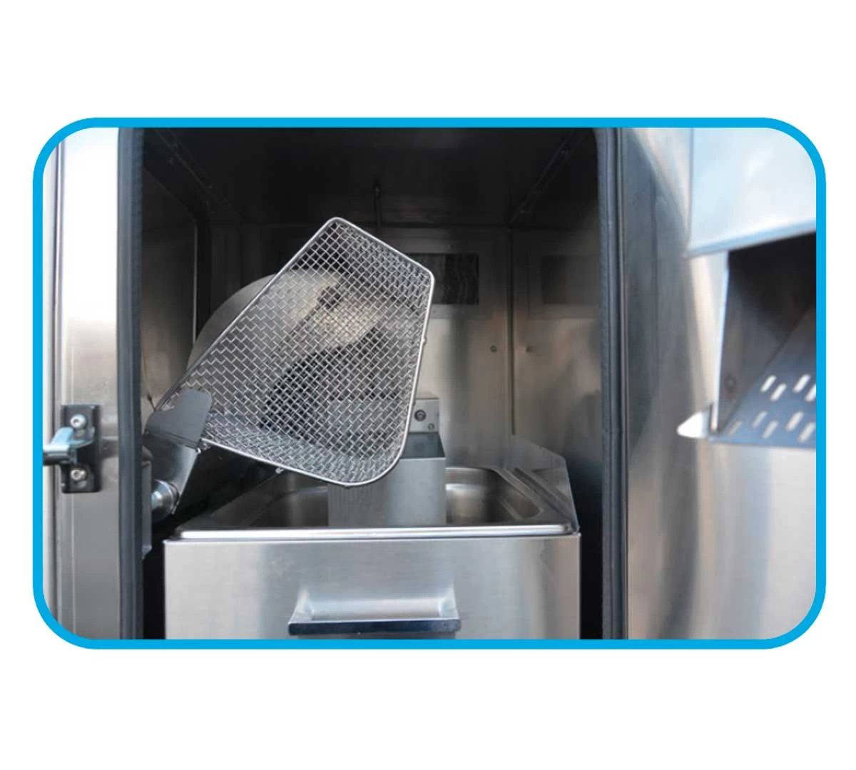 Tiene una capacidad de 9 litros y producción de 28 kg/h. Ideal para establecimientos de Fast Food, Casual Dinning, restaurantes, bares de tapas, catering, centros comerciales, precocinados en supermercados, estaciones de servicio, etc.