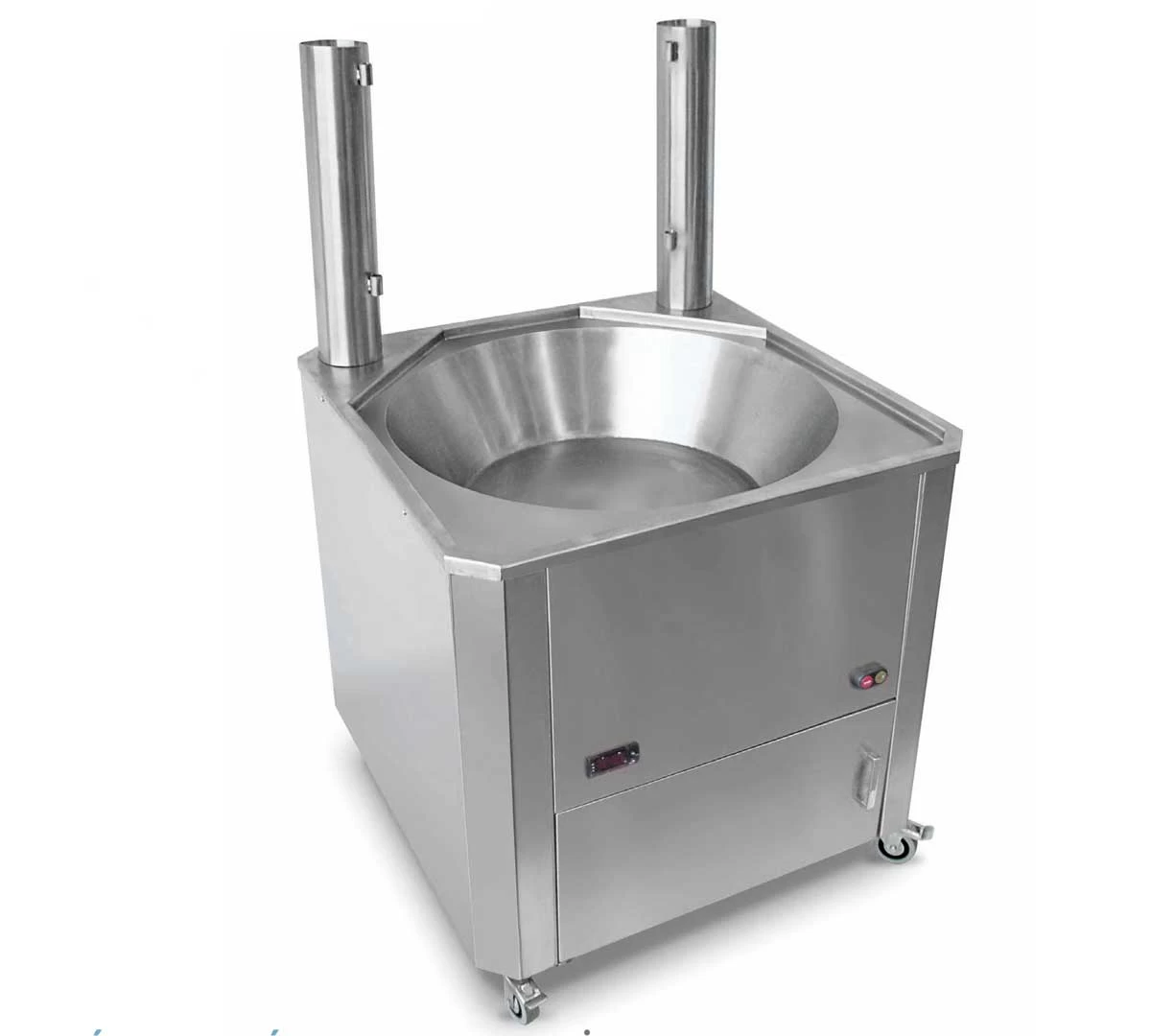 El diámetro superior mide 70 cm y el inferior 50 cm. - Freidora Fogón FGAUT90, con 30 litros de capacidad y dimensiones 90 x 90 x 80 cm.
