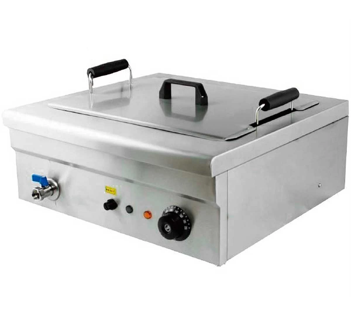 La Freidora Eléctrica FRY-18 para Pastelería de Irimar tiene una gran superficie de cesta para facilitar la fritura en productos de pastelería. Incluye grifo, cesta con dos asas y patas de goma antideslizantes.