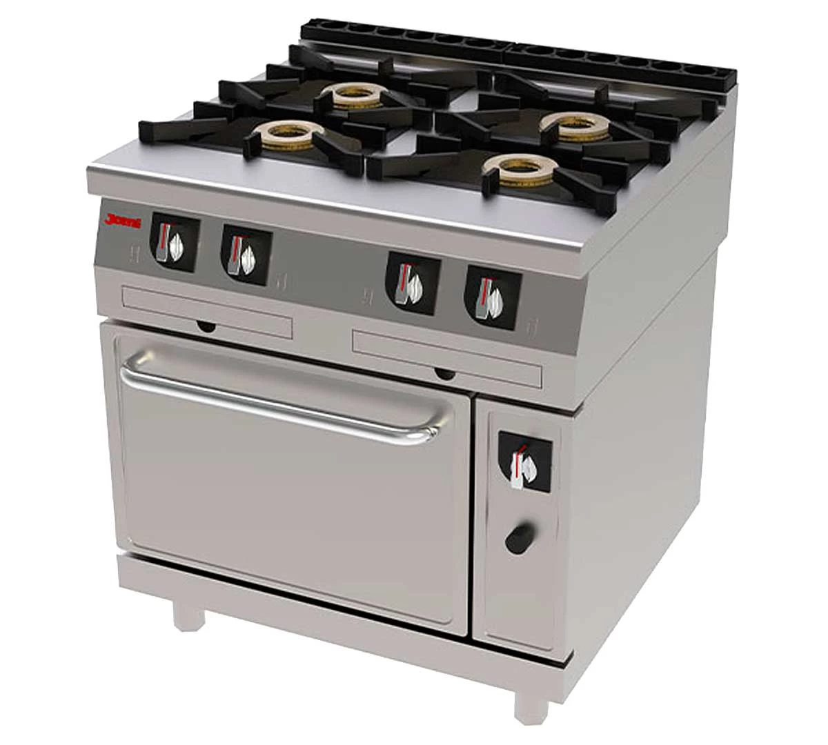 Con quemadores de fundición especial, corona de doble llama autoestabilizada, llama piloto y termopar. Dispone de horno.
