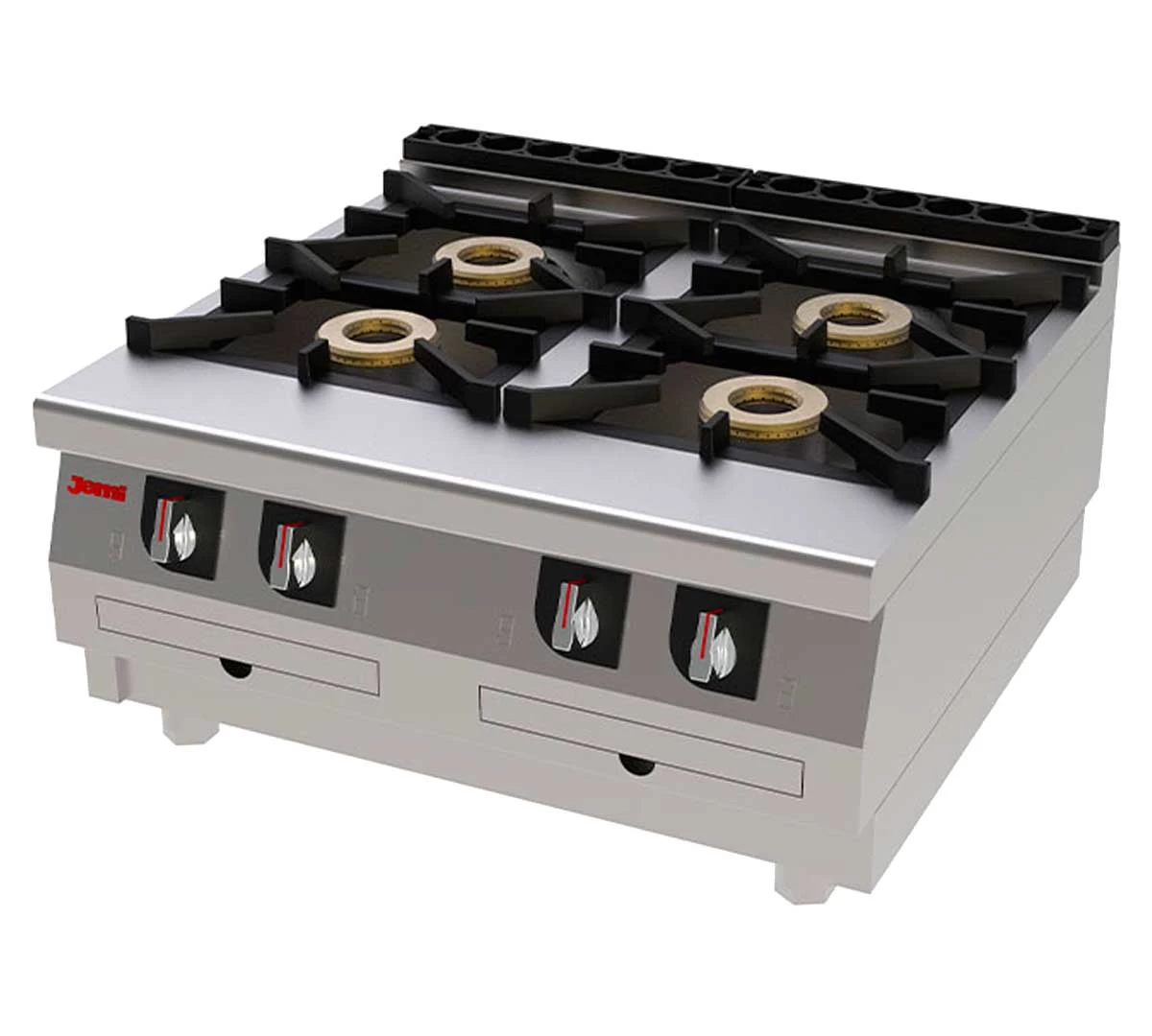 Cocina Serie 750 de Sobremesa a Gas de Jemi, fabricada en acero inoxidable con superficie de cocción uniforme, permitiendo el desplazamiento de los utensilios con el mínimo esfuerzo sin riesgo de accidente.
