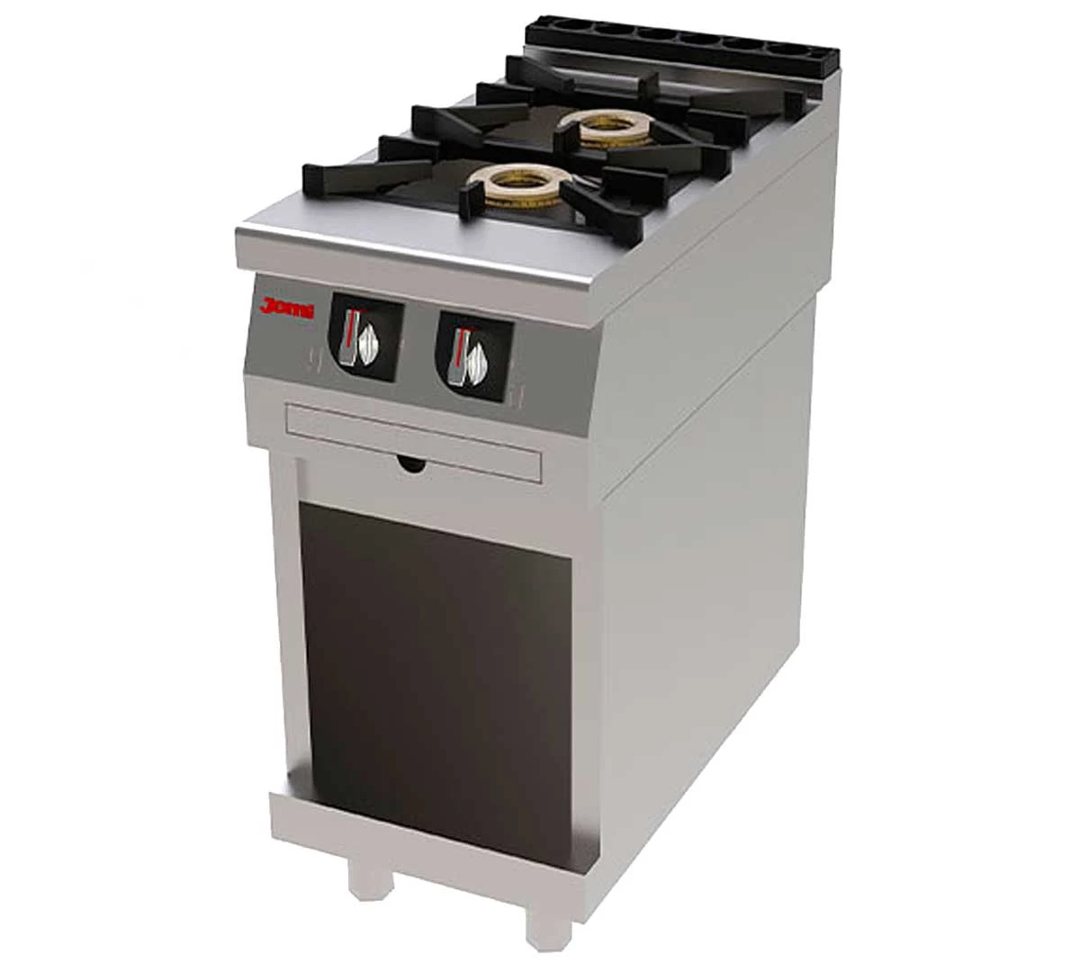 - T721, con 2 fogones de 7,4 kW y unas dimensiones de 40 x 75 x 85 cm. 14,8 kW de potencia y 12.600 Kcal/h.