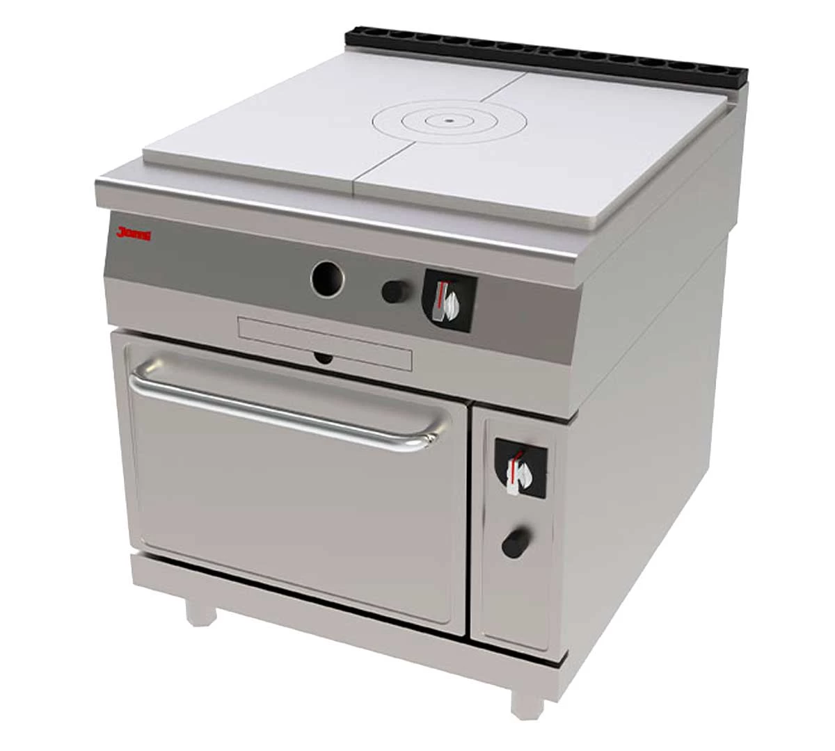 Cocina Coup de Feu o Placa Francesa Serie 900 con Horno de Jemi, fabricada en acero inoxidable.