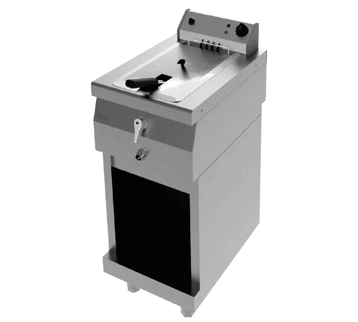 La Freidora Serie 600 de Pie Eléctrica de Jemi, construida en acero inoxidable con capacidad de hasta 8 litros de aceite.