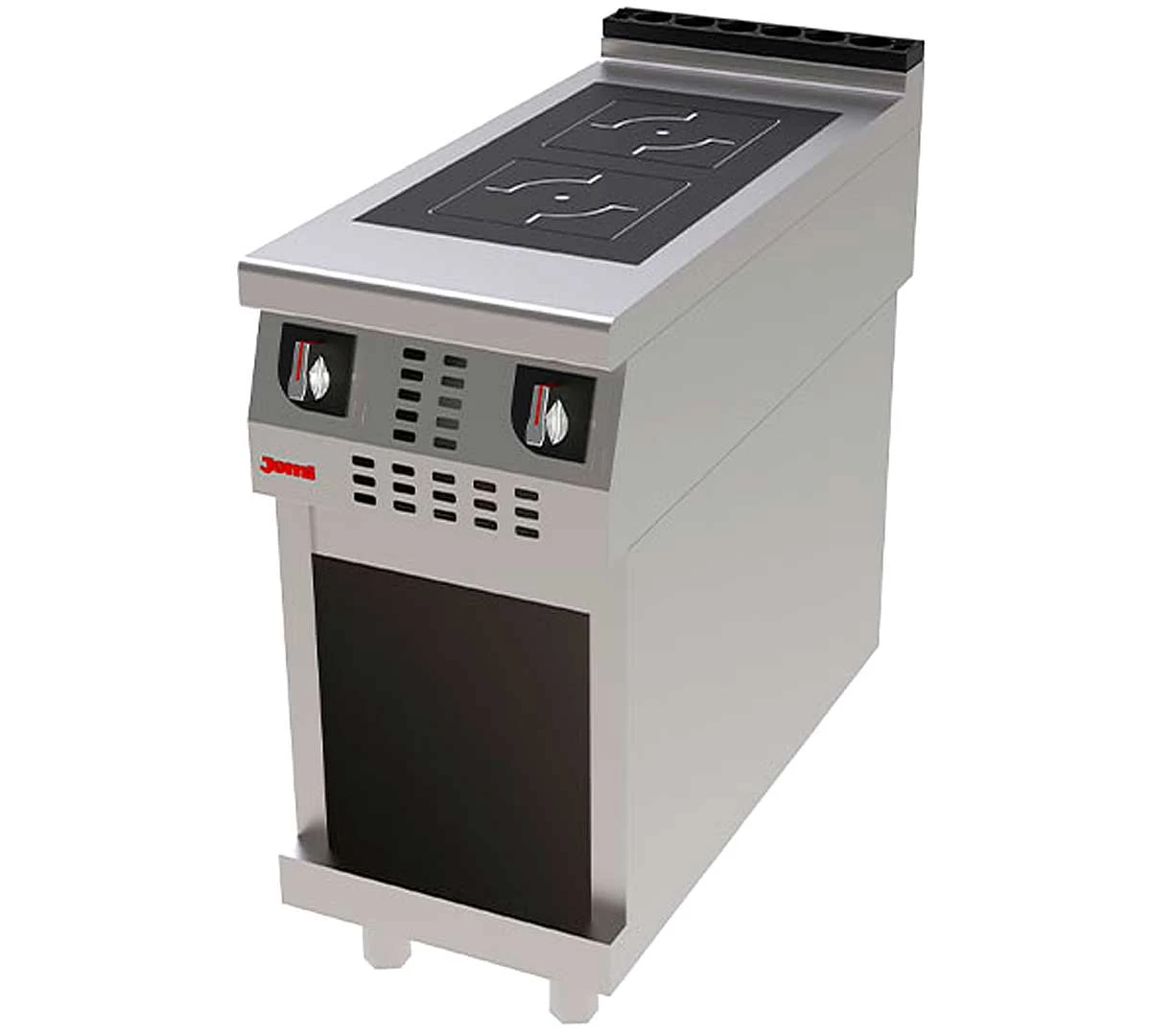 Placa de Inducción Serie 900 de Pie de Jemi, construida en acero inoxidable con 3,5 o 5 kW de potencia.