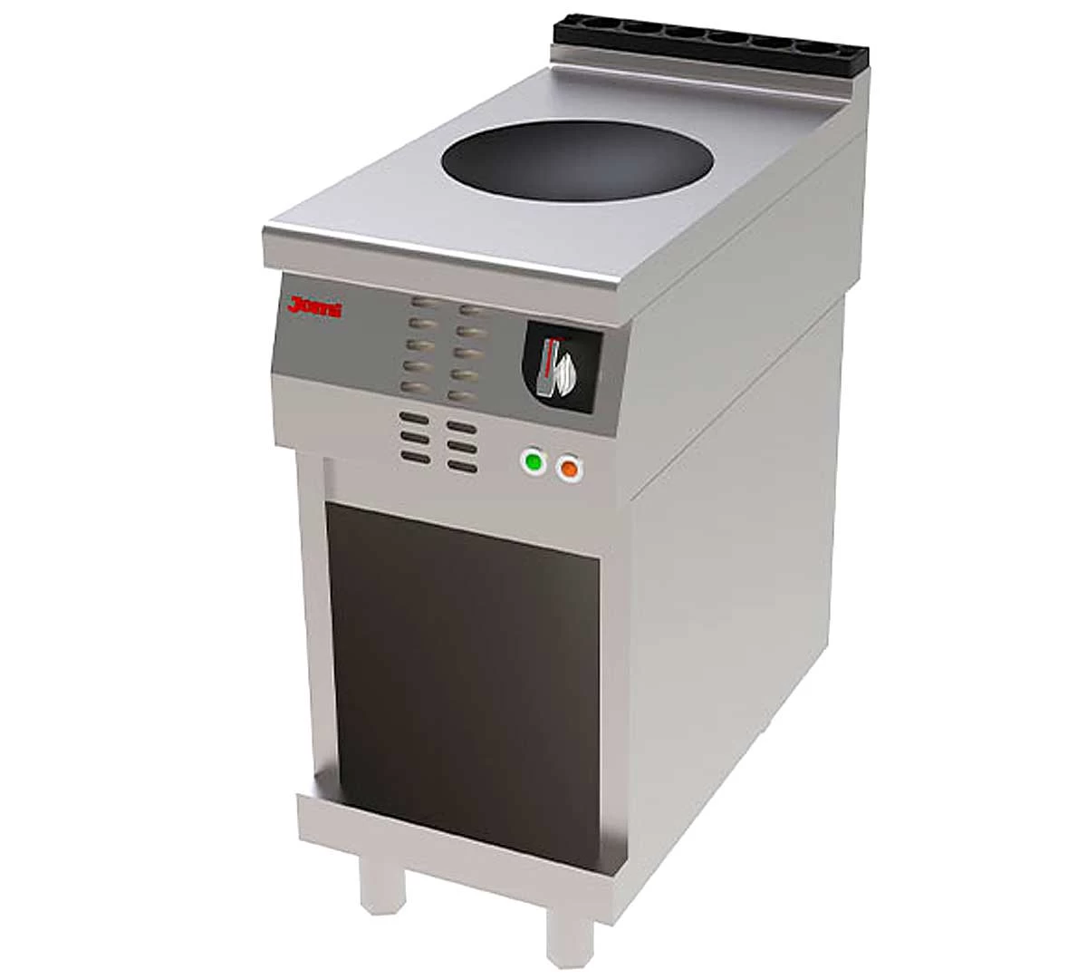 Cocina Wok de Inducción Serie 750 de Pie de Jemi, construida en acero inoxidable con 3,5 o 5 kW de potencia.