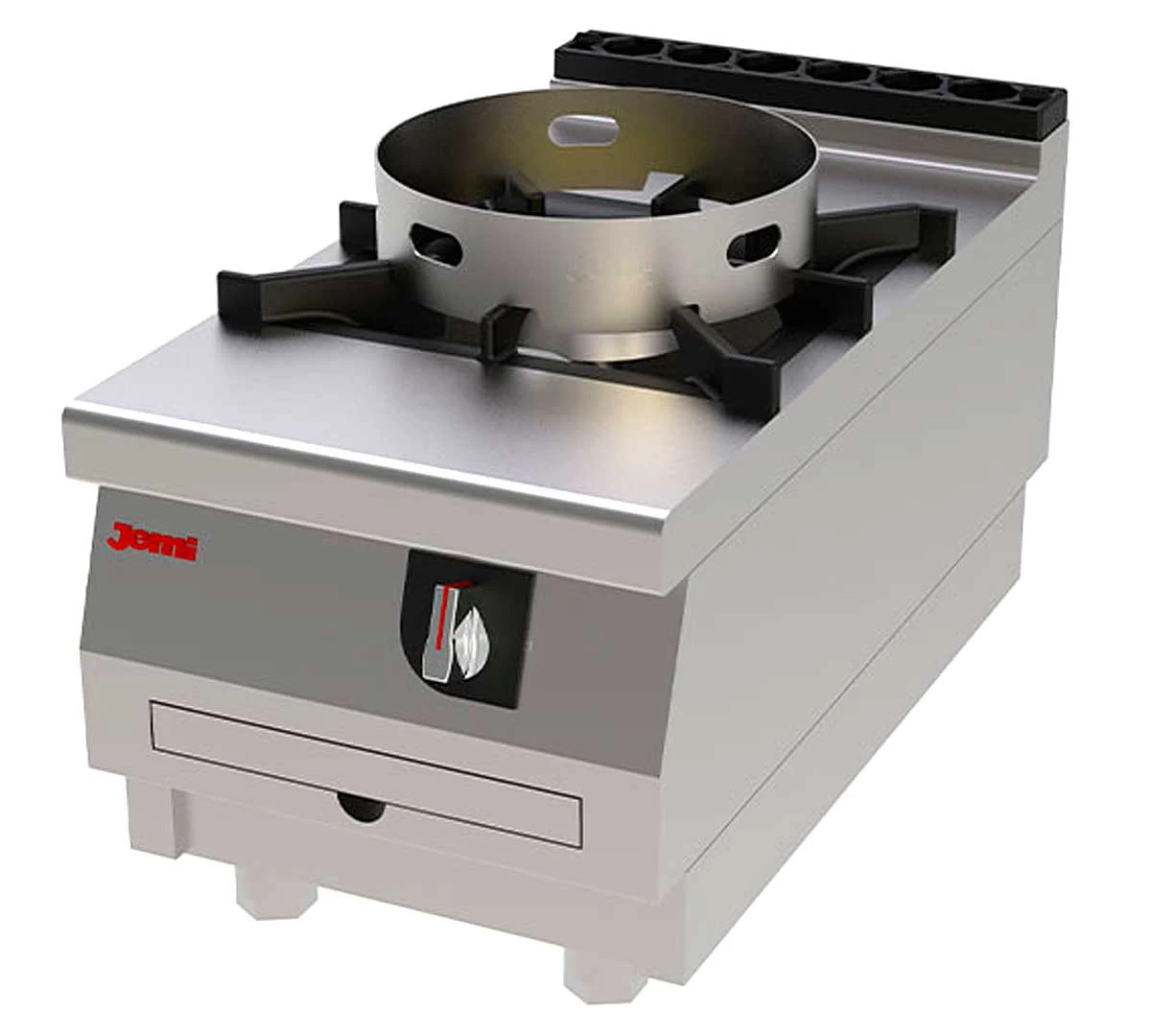 Cocina Asiática Serie 750 de Sobremesa a Gas de Jemi, fabricada en acero inoxidable.