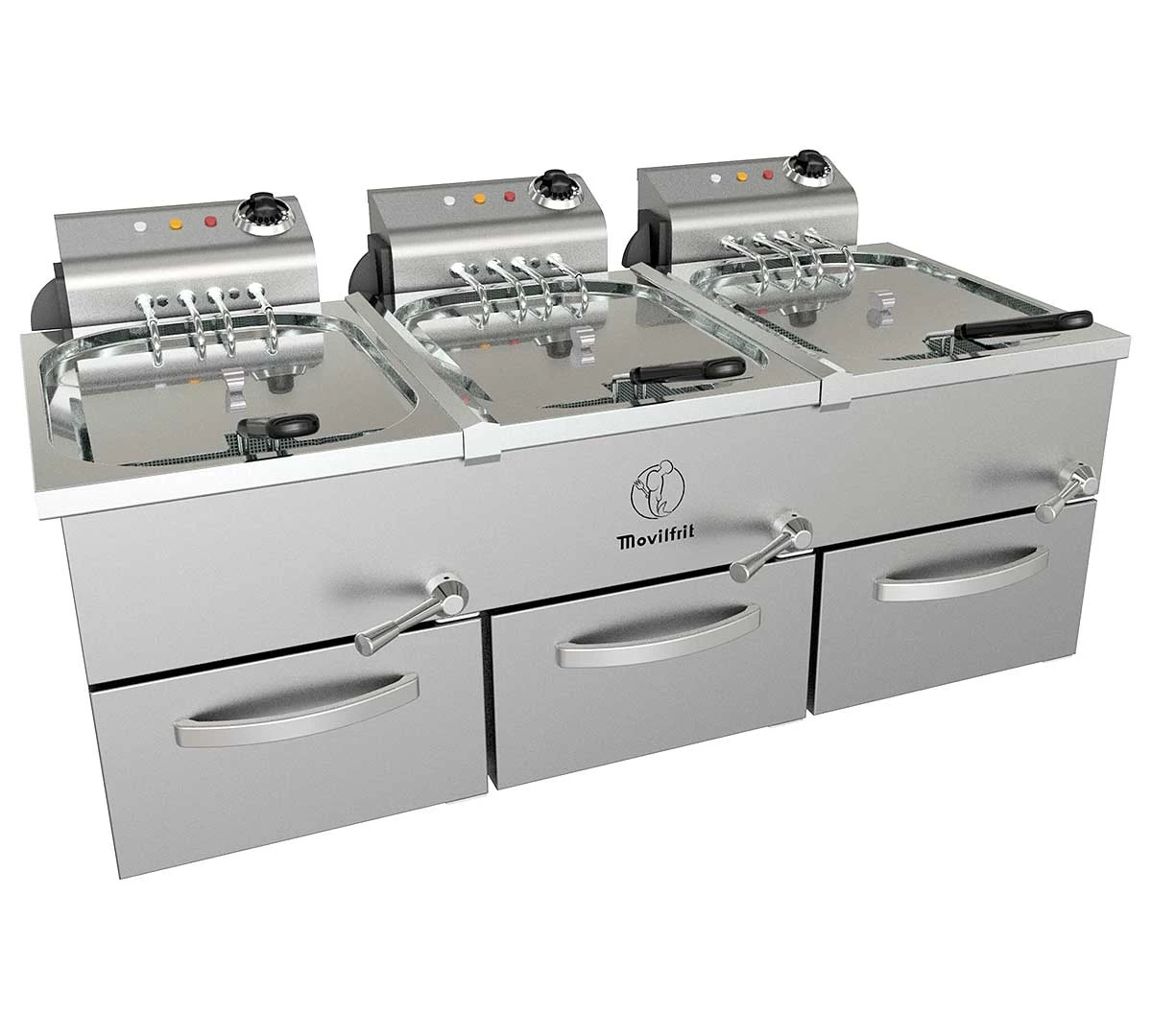| Movilfrit Freidora FAH Triple 3 Cubas de 10 litros – Potencia 4+4+4 kW | ||