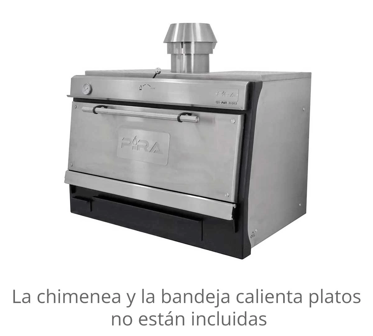 - Equipado con termómetro, cortallamas y regulador de tiro interno, preparado para funcionar desde el primer momento, situándolo únicamente bajo una campana.