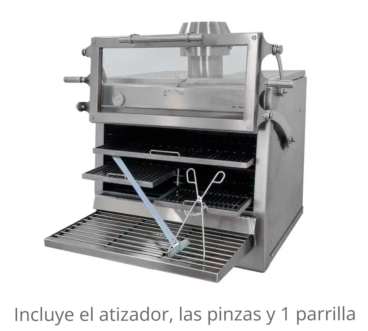 La puerta de cristal le permite ver los productos que se cocinan, no tiene que mantener la puerta abierta ver el alimento, manteniendo la temperatura del horno siempre más constante y reduce el consumo de carbón.