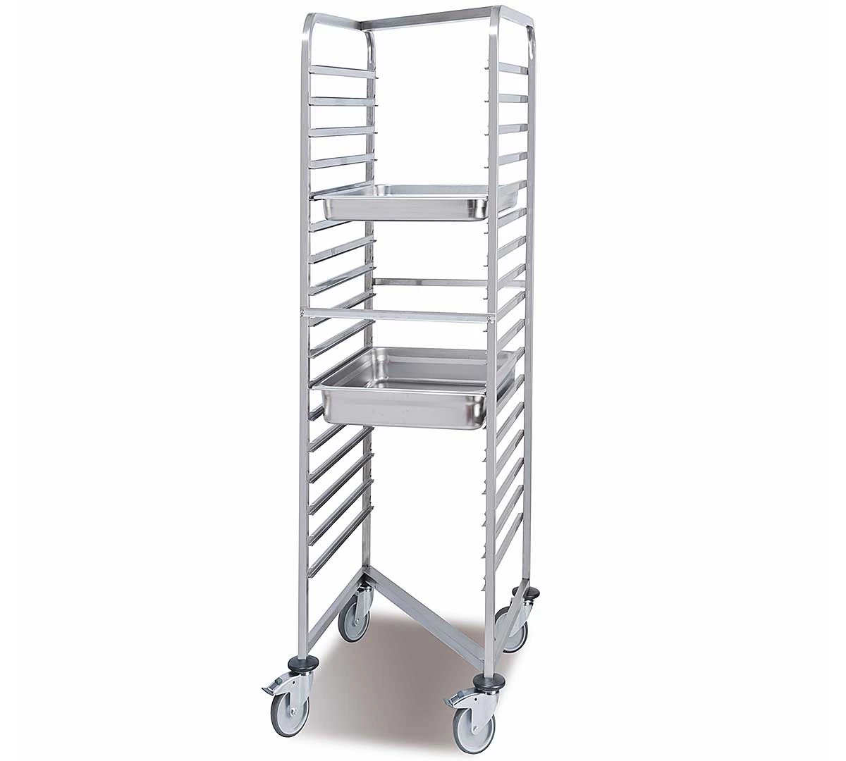 El Carro Encastrable GN de Pujadas está fabricado en acero inoxidable. Está diseñado con 17 niveles y tiene capacidad para 17 bandejas GN 1/1 o GN 2/1, según el modelo. Tiene 4 ruedas que facilitan su traslado.