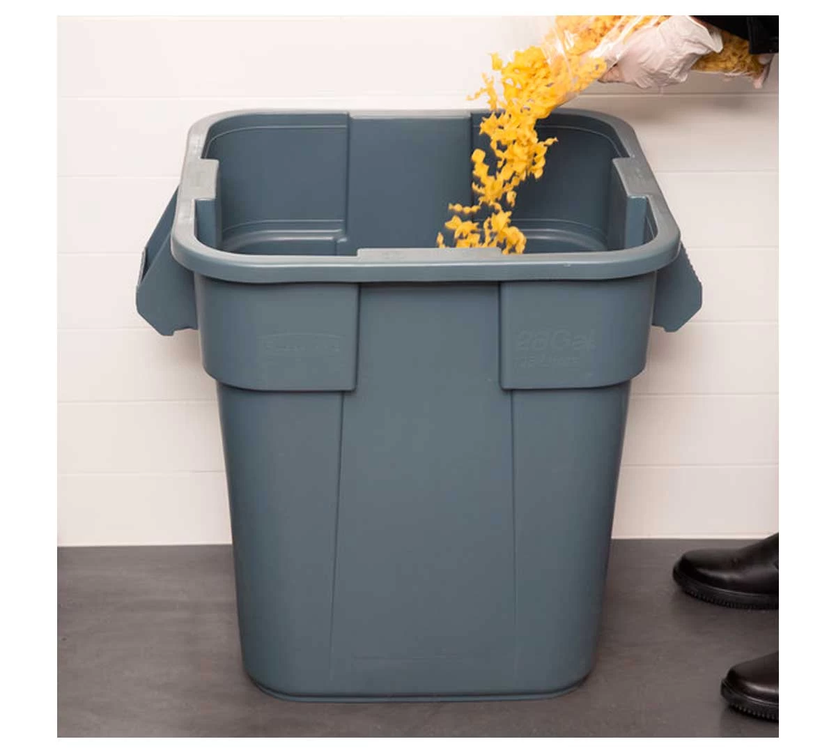 El Contenedor Brute Cuadrado 151,4 litros de Rubbermaid está fabricado en polietileno resistente a la deformación y decoloración. La forma cuadrada permite hasta un 14% más de espacio que los contenedores redondos.